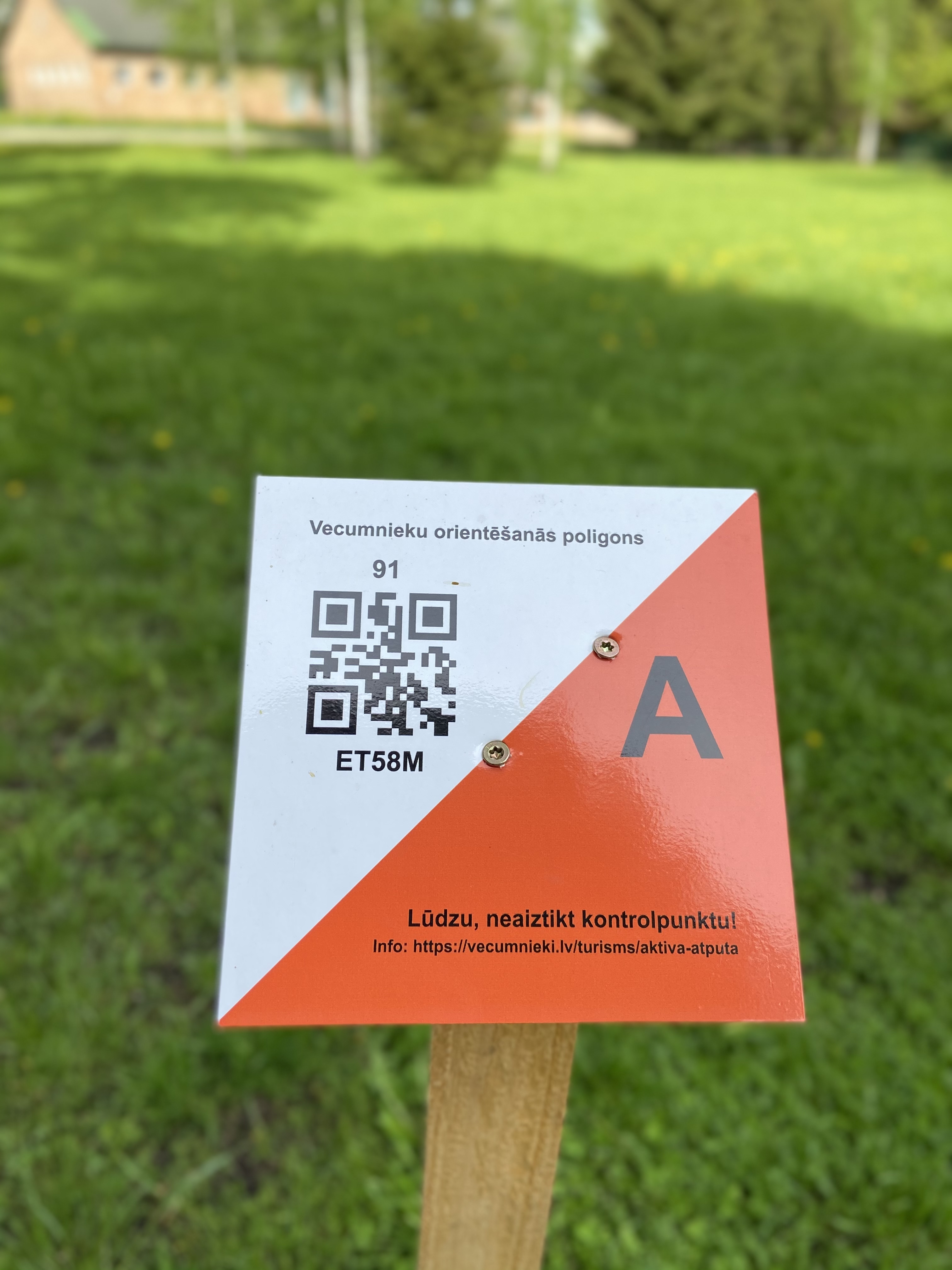 Katrā no kontrolpunktiem atrodās šāds, normāla izmēra, informācijas kociņš, uz kura ir pieejams skenējams QR kods un burts.